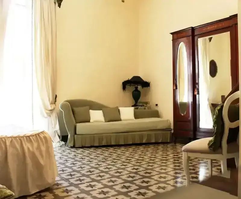 Le camere, tutte diverse per stile e colori (Verde, Rossa, Blu e Azzurra), offrono ambienti romantici, luminosi e accoglienti, con arredi d’epoca, dettagli retrò e viste sul giardino.